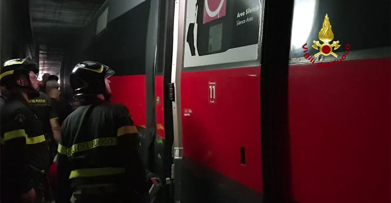 L’immediato intervento proprio dei Vigili del Fuoco ha consentito di mettere in sicurezza tutti i passeggeri, ma sulla linea ferrata restano diversi detriti provocati dall’urto del treno con la galleria.