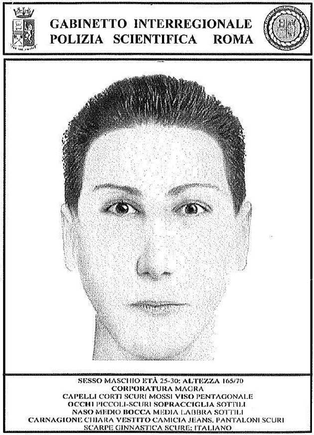 Secondo l’identikit l’uomo ha un’età tra i 25 e 30 anni, è alto 165/170cm, capelli mossi scuri, viso pentagonale, occhi piccoli scuri, sopracciglia sottili, naso medio, bocca media, labbra sottili, carnagione chiara. Al momento dell’aggressione indossava una camicia di jeans, calzoni scuri, scarpe da ginnastica scure e parlava con un accento romanesco.