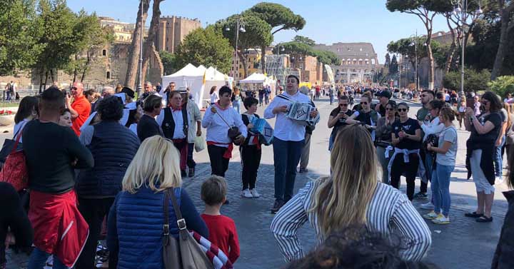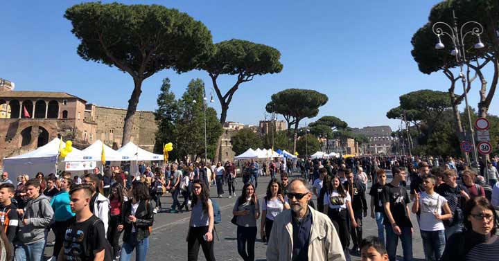 L’appuntamento, alla presenza del presidente della Regione Lazio Nicola Zingaretti e del presidente nazionale di Legambiente Stefano Ciafani, si è svolto in Via dei Fori Imperiali che è tornata a colorarsi di sapori e storie grazie ai rappresentati dei Piccoli Comuni e ai volontari dell’associazione del cigno verde.