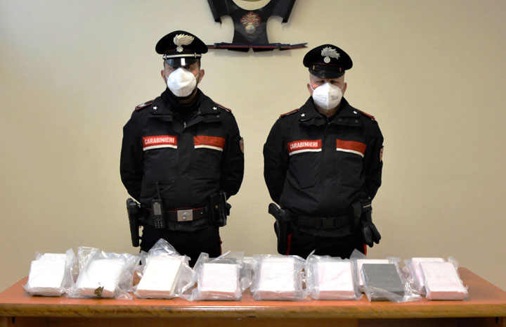 Ritenendo che l’uomo, in atto disoccupato, potesse esercitare qualche attività illecita, i Carabinieri hanno deciso di seguirne gli spostamenti e di effettuare un controllo nell’abitazione: nel corso della perquisizione, i militari hanno rinvenuto e sequestrato 25 panetti di cocaina, per un peso complessivo di 26,8 Kg., nonché la somma contante di oltre 210mila euro.