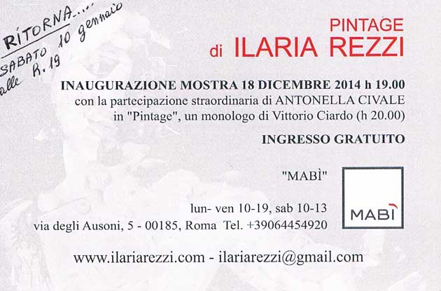 La rassegna è stata inaugurata Sabato 10 Gennaio 2015, presso la Galleria “Mabì”, in Via degli Ausoni 5, Roma, con la partecipazione straordinaria di Antonella Civale, che ha interpretato, egregiamente, il monologo “Pintage” di Vittorio Ciardo.