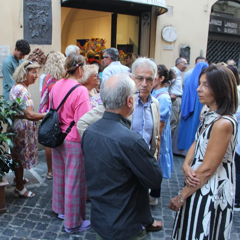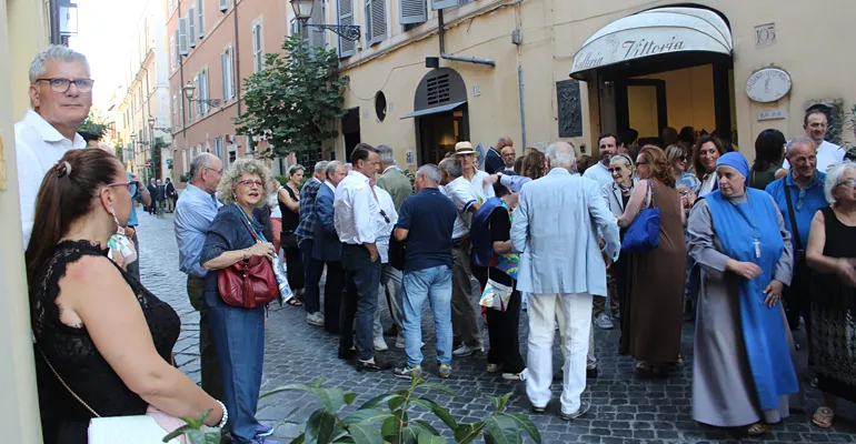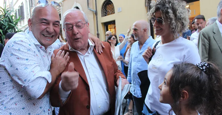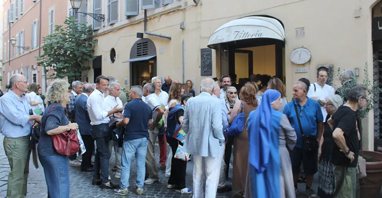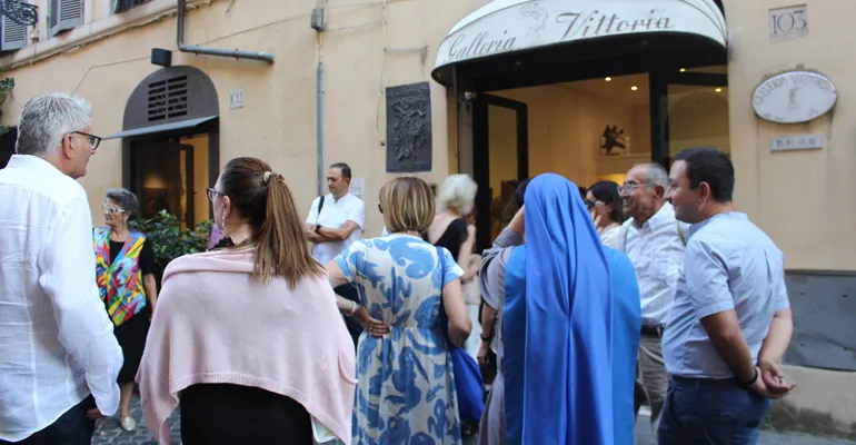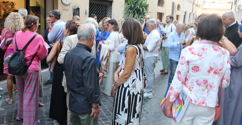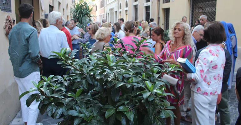 Una folla che ha quasi bloccato il traffico della meravigliosa Via Margutta, la via degli artisti, che il grande storico dell’arte Johann Joachim Winkelmann (1717-1768) così descriveva “Nobile semplicità e quieta grandezza”.