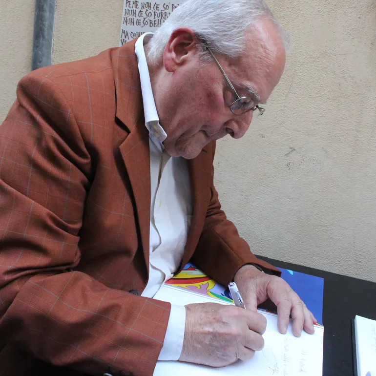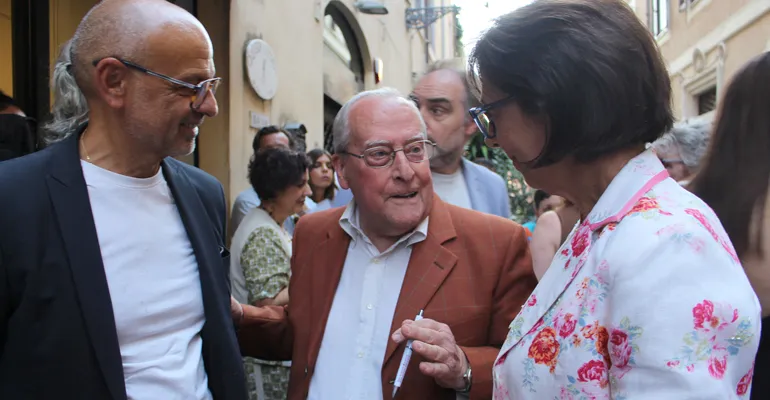 Io lo conosco da tanto tempo, ho avuto la fortuna di poter fare con lui anche qualche mostra all’epoca della Provincia e ci siamo incontrati in un percorso che negli anni ha fatto maturare anche una profonda amicizia e a me fa piacer che Roma si blocchi perché tanti Segnini vengono a rendere omaggio ad un grande artista che è l’orgoglio di Segni e di questo io lo voglio ringraziare».