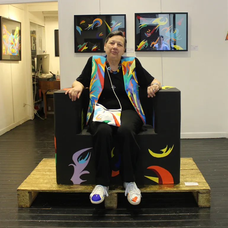 In evidenza al centro della prima sala, ed ammiratissima, la “poltrona Ufagrà”, realizzata nel 2017 in acrilico e plexiglass su poltrona in cartone London pressato realizzata dalla Sekkei srls, impossibile per i visitatori rinunciare ad un selfie-ricordo comodamente seduti!