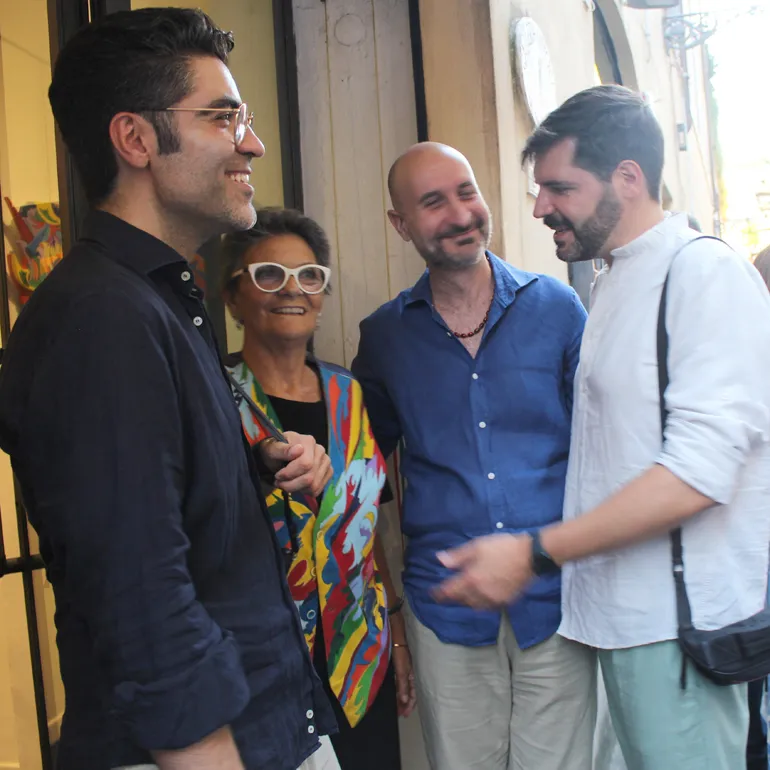 A tagliare il nastro insieme all’artista, c’erano il critico d’arte Andrea Baffoni, il Sindaco di Segni Silvano Moffa, ed i titolari della galleria Tiziana e Tiziano M. Todi.