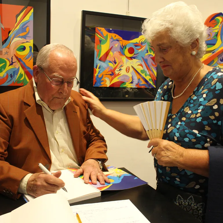 Ad accompagnarlo c’erano i suoi affetti più cari – la moglie Maria Pia e la figlia Rita (Suor Addolorata) – ed un numerosissimo pubblico: personalità, collezionisti ed appassionati d’arte, critici e tantissimi amici che, nel corso di ben quarantacinque anni di attività, hanno seguito l’opera di Antonio Fiore, in arte Ufagrà, testimoniando così il loro affetto e la loro vicinanza all’artista, ma soprattutto all’uomo sempre sorridente e disponibile soprattutto verso le giovani generazioni.