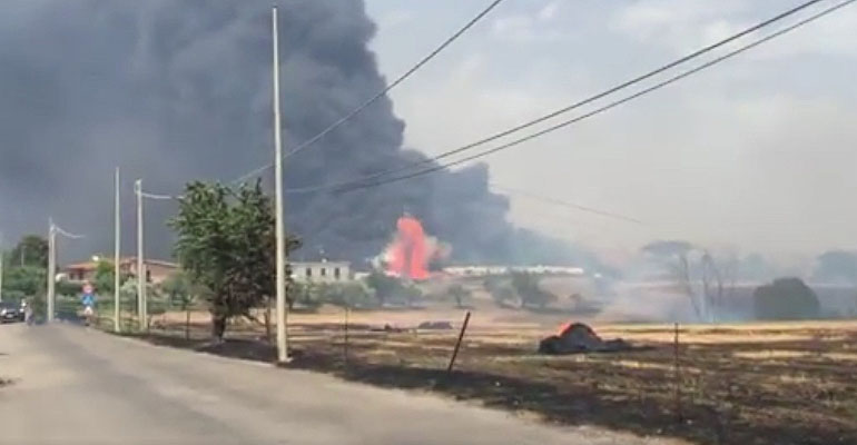Roma. Maxi incendio in zona Casalotti. Diversi edifici evacuati. Decine di bombole esplose in un deposito. Fumo in tutto il quadrante nord-ovest