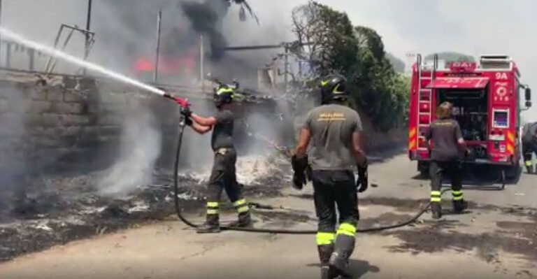 In breve il fuoco è arrivato a lambire alcune abitazioni, mentre sul luogo dell’incendio giungevano la Polizia di Stato, i Carabinieri e la Polizia Locale oltre a due autopompe a serbatoio, un’autobotte ed un elicottero dei Vigili del Fuoco nonché le ambulanze del 118 i cui sanitari hanno visitato in strada 35 persone, residenti nell’area, con difficoltà respiratorie.