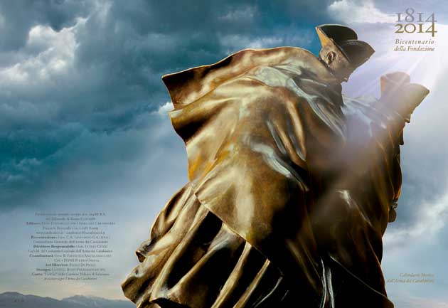 Termina con il calendario celebrativo del Bicentenario di Fondazione la serie iniziata nel 2011 per ripercorrere le tappe salienti della storia dell’Arma dei Carabinieri. 12 tavole realizzate dal Maestro Paolo Di Paolo – e dal Sig. Massimo Maracci riguardo alla pagina centrale – che sintetizzano l’odierna attività dell’Arma, rievocano significativi eventi degli ultimi dieci lustri nei quali i Carabinieri sono stati presenti e mettono in correlazione avvenimenti del passato con quelli più recenti per sancire l’importanza del “copioso patrimonio di valori umani ed etici che le generazioni precedenti ci hanno tramandato”.