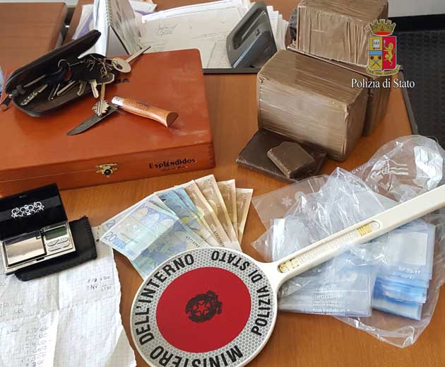 G.C., queste le iniziali dell’uomo, è stato anche trovato in possesso di alcuni manoscritti con nomi e cifre, evidentemente dettaglio della “distribuzione” della droga.