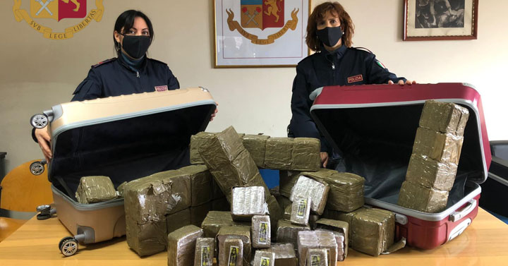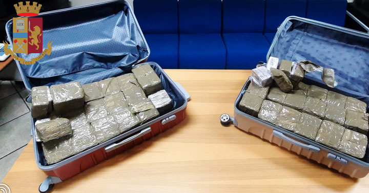 Roma. Scoperta staffetta della droga con 40 kg di hashish. 35enne di Anagni e 33enne di Alatri arrestati dalla Polizia di Stato