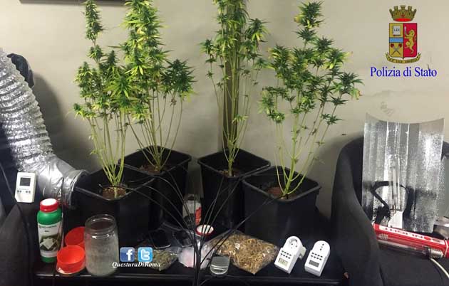 Nel quartiere di Centocelle gli agenti del Reparto Volanti, intervenuti in un’abitazione affittata a più persone per una lite, hanno scoperto una mini serra di marijuana. 4 piante erano coltivate all’interno di armadio in stoffa – di quelli comunemente usati per il campeggio – illuminato artificialmente da alcune lampade. Sono in corso ulteriori accertamenti per stabilire la paternità dell’armadio/serra.