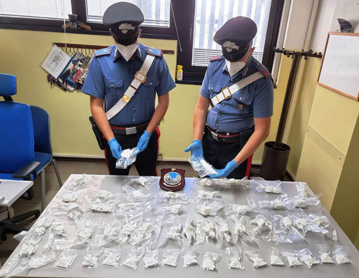 I Carabinieri, dopo averli tenuti d’occhio per un po’, hanno deciso di far scattare un blitz e di perquisire l’appartamento, rinvenendo 53 involucri in cellophane, chiusi a pressione e sottovuoto, contenenti cocaina per un peso totale di 2,3 kg.