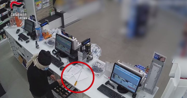 Roma. Torrenova. Travisato con una mascherina chirurgica rapina una farmacia con la minaccia di un cacciavite. 48enne di Albano arrestato dai Carabinieri