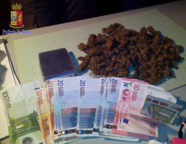 All’interno dello zaino in possesso al giovane, i poliziotti hanno trovato tutta la strumentazione per garantire la “freschezza” del prodotto: trita erba, bilancino di precisione e soprattutto oltre un etto di marijuana.Quest’ ultima non confezionata ma tritata e venduta a peso come al mercato. I proventi dello spaccio gli avevano fruttato fino a quel momento 475 euro in banconote di vario taglio.