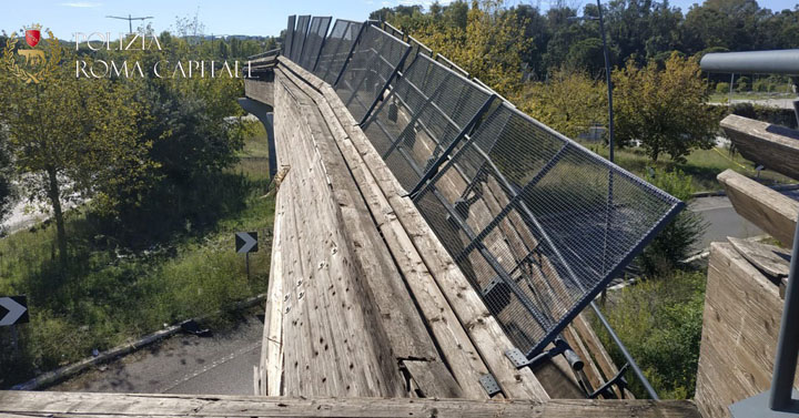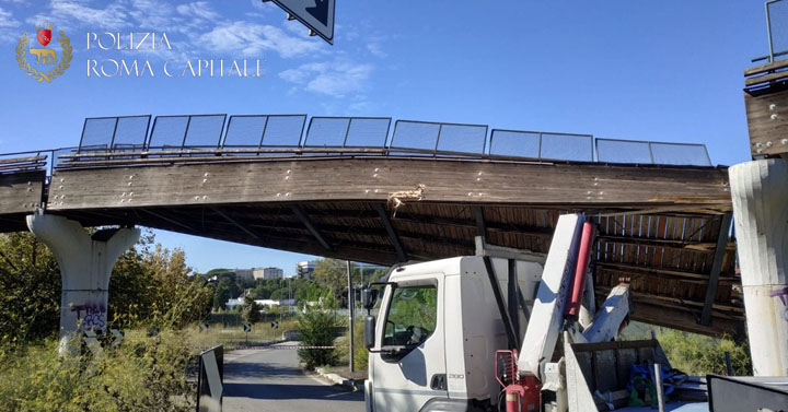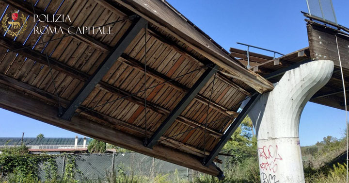 ROMA – Non erano ancora le 10 della mattinata di oggi, 8 Ottobre, quando un autocarro gru con braccio meccanico sopraelevato ha urtato un ponte della pista ciclabile facendolo crollare.