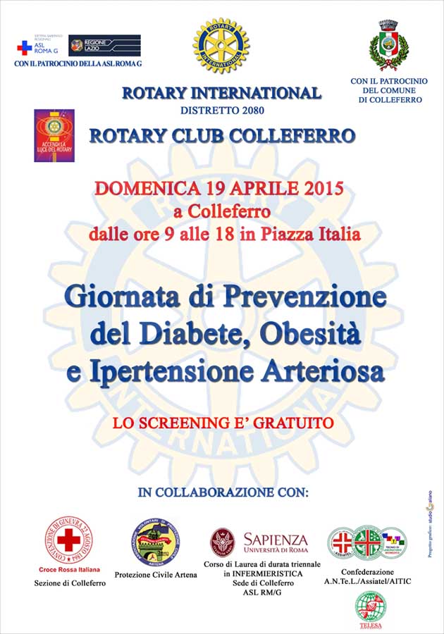 COLLEFERRO (RM) – Sull’onda del successo di partecipazione degli ultimi anni, anche quest’anno il Rotary Club di Colleferro organizza la “Giornata di prevenzione del Diabete, Obesità e Ipertensione Arteriosa”.
