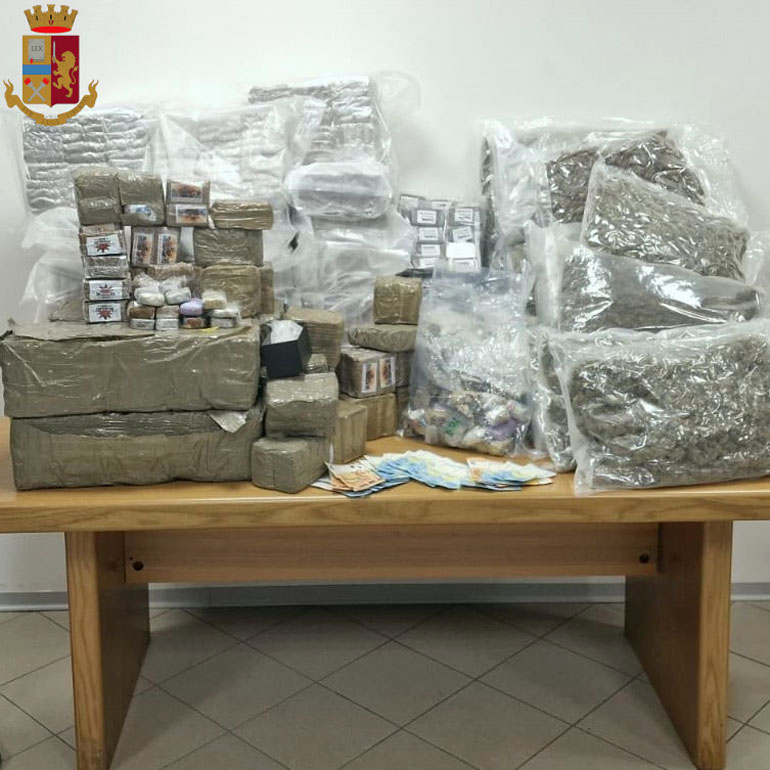 A seguito della perquisizione sono stati rinvenuti ben 212 Kg di hashish e 19 grammi circa di marijuana, occultati in diversi vani, la somma di 850 euro in banconote di vario taglio e il materiale necessario per il confezionamento e la conservazione della sostanza.