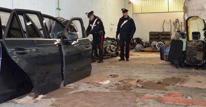 Ad esito dell’accurata ispezione eseguita nel capannone, al cui interno non vi era nessuno, sono state rinvenute parti di autovetture già smontate e “tagliate”, tutte di marche di lusso: 25 portiere, 10 cofani, 11 motori, 9 tettucci, 12 avantreni, 8 cruscotti, 11 marmitte e 30 pneumatici, oltre a tutti gli attrezzi utilizzati per il lo smontaggio e il taglio illegale dei veicoli.