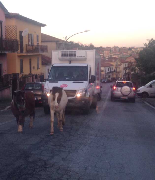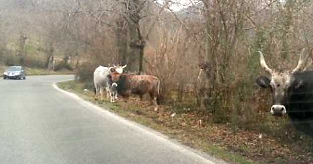 Invece non è così. Le bestie sono liberamente a diporto e perfettamente al centro della corsia verosimilmente dirette a Segni…