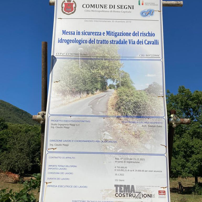 «L’intervento di messa in sicurezza di Via dei Cavalli – precisa l’Assessore ai Lavori Pubblici Renato Cacciotti – oltre la messa in sicurezza ed ampliamento nell’intersezione d’ingresso con Via Roccamassima – dove sono già in opera le perforazioni per la realizzazione di 56 pali in cemento armato – contempla anche la realizzazione del manto di asfalto su tutta la strada che arriva fino a Monte Nero i cui lavori inizieranno la prossima settimana».