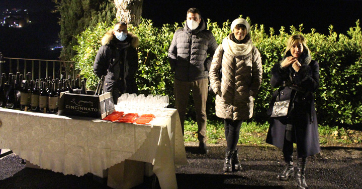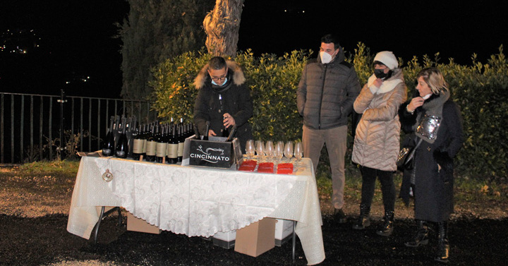 A suggellare l’incontro un brindisi augurale a cura del Bar San Marco con Stefano Calenne che, in veste di sommelier, ha deliziato i presenti con una degustazione di nuovi vini Bio della Cantina laziale Cincinnato, compresa una spumeggiante sorpresa quella del “Sur Lie”, fantastiche bollicine ottenute da un’attenta selezione di grappoli di uve Bellone e prodotto tramite il metodo Martinotti.