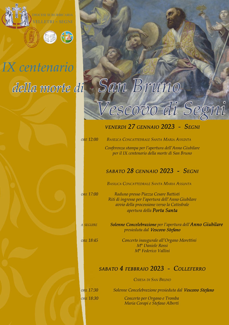 SEGNI – In occasione del IX Centenario della morte di S. Bruno (1123-2023), con apposita Bolla, il 2023 è stato proclamato Anno Giubilare Straordinario.