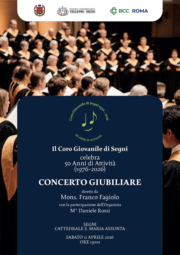 SEGNI (Eledina Lorenzon) – È tutto pronto per celebrare -nella giornata di Sabato 11 Aprile alle ore 19,, nella Concattedrale di Santa Maria Assunta di Segni – il traguardo straordinario del 50° Anno di attività del “Coro Giovanile di Segni” con un fantastico Concerto Giubilare sponsorizzato dalla Banca di Credito Cooperativo di Roma.