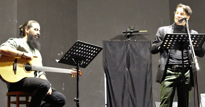 Nel corso della presentazione l’autore ha letto alcuni brani del libro accompagnato alla chitarra dal cantautore Michele Nastasia.