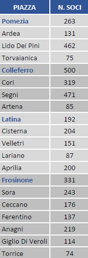 Nella zona Agro Pontino-Frusinate Roma Est operano 20 agenzie Bcc Roma a cui afferiscono 4.434 soci.
