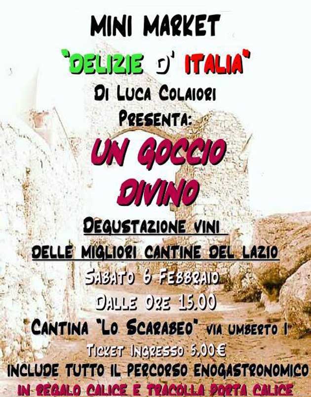 Appuntamento, quindi, a Segni, Sabato 6 Febbraio a partire dalle ore 15 con “Un Goccio Divino” presso la Cantina “Lo Scarabeo” sita in via Umberto I.