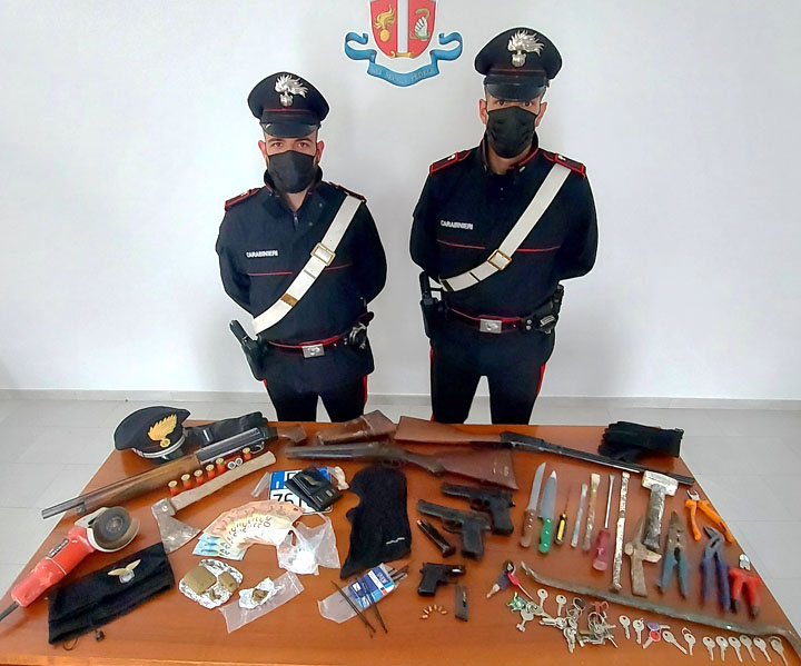 I militari, partendo dagli sviluppi di mirata attività investigativa, nel corso di una serie di perquisizioni personali e locali, hanno rinvenuto una pistola, due fucili (di cui uno a canne mozze) e una bomba carta artigianale.