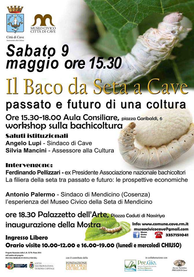 CAVE (RM) – L’Amministrazione Comunale di Cave, in collaborazione con il Museo Civico Città di Cave – Sez. Tabacco e Baco da seta, ha in programma per Sabato 9 Maggio 2015 l’inaugurazione di una Mostra dedicata alla bachicoltura, tematica questa che accomuna molte zone del territorio italiano.