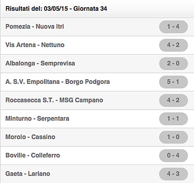 I RISULTATI DELL’ULTIMA GIORNATA