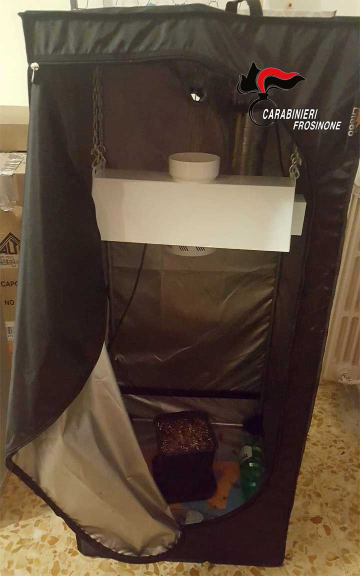 L’uomo, a seguito di perquisizione domiciliare eseguita d’iniziativa dai militari operanti, veniva trovato in possesso di circa 300 grammi di marijuana, bilancini di precisione, attrezzatura completa per la coltivazione della canapa indiana, ormoni per la crescita delle piante, vari manuali tecnici, una serra attrezzata con apposite lampade per la coltivazione e la successiva essicazione della stessa, che avveniva utilizzando degli stendibiancheria.