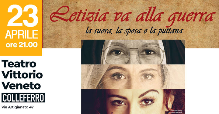 COLLEFERRO – Questo Sabato 23 Aprile alle ore 21, con la pièce “Letizia va alla guerra” di Agnese Fallogno, si