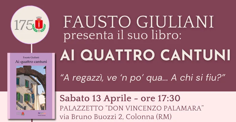 Colonna. Sabato 13 Aprile al palazzetto dello Sport Fausto Giuliani presenta il libro “Ai Quattro Cantuni”