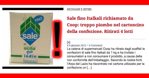 Leggi tuttoLA CATENA di supermercati Coop ha ritirato dagli scaffali le confezioni di sale fino (+ Iodio) Italkali da 1 kg e