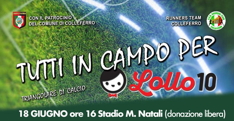 Colleferro. “Tutti in campo per Lollo10” una partita di calcio per sostenere la Lolloterapia organizzata dai ragazzi Asd Runners Team
