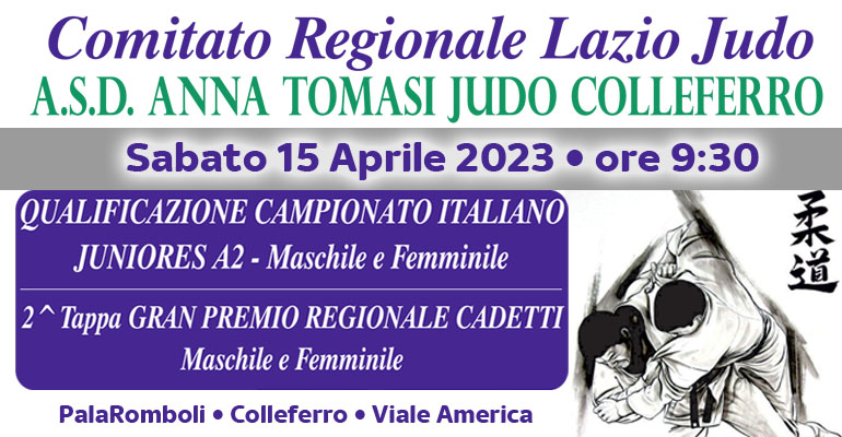Colleferro. Judo. Sabato 15 Aprile al PalaRomboli Qualificazione al Campionato Italiano JA2 e 2^ Tappa del Gran Premio Regionale cadetti
