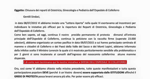 COLLEFERRO (RM) – Riceviamo e pubblichiamo una lettera inviata dall’Associazione in Difesa dell’ospedale di Colleferro ai Sindaci del comprensorio in