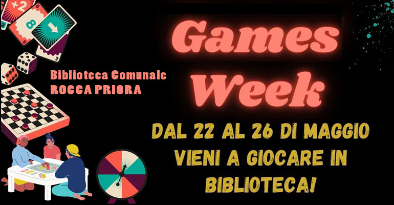 Rocca Priora. Games Week! Nelle sale della Biblioteca Comunale Luigi Porcari dal 22 al 26 Maggio