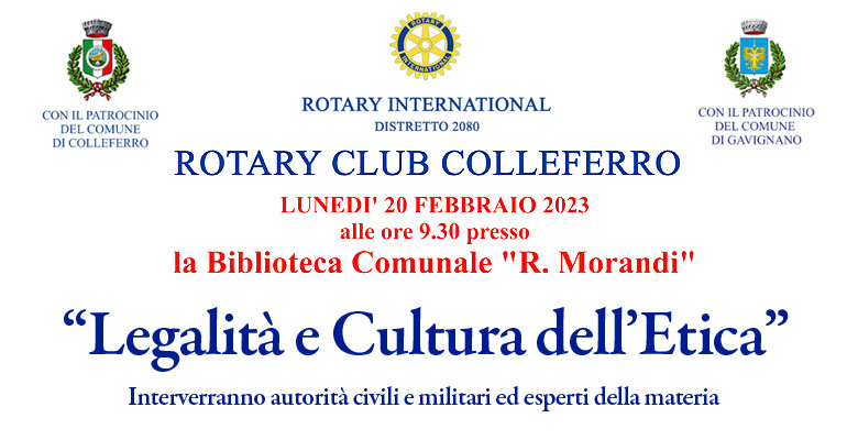 COLLEFERRO – Lunedì 20 Febbraio, alle ore 9,30, presso la Biblioteca Comunale “R. Morandi” il Rotary Club di Colleferro incontrerà