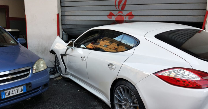 Colleferro. 77enne perde il controllo della Porsche e sfonda la saracinesca dell’autorimessa della caserma dei Vigili del Fuoco