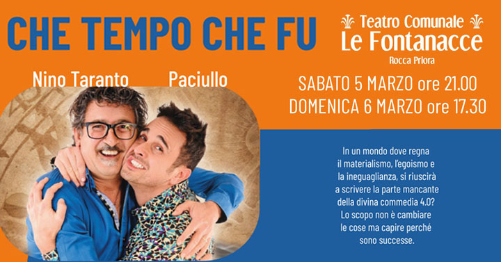 Rocca Priora. Il 5 e 6 Marzo “Che Tempo Che Fu” con Nino Taranto e Paciullo al Teatro Comunale “Le Fontanacce”