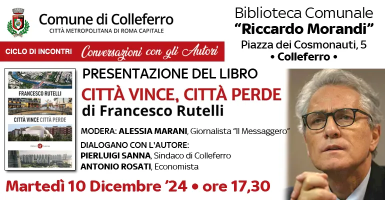 Colleferro. Martedì 10 Dicembre alle ore 17 in Biblioteca Comunale Francesco Rutelli presenta il suo libro “Città vince, città perde”