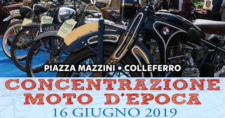 COLLEFERRO – Domenica 16 Giugno a Colleferro in piazza Mazzini, si terrà una interessante “Concentrazione moto d’epoca” organizzata dal Comitato