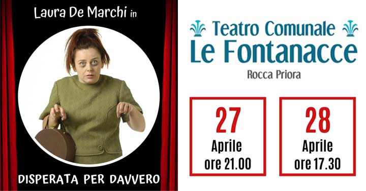 Rocca Priora. Il 27 e 28 Aprile al Teatro Comunale Le Fontanacce Laura De Marchi nella commedia “Disperata per Davvero”