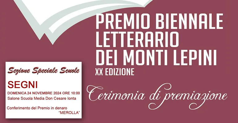 Segni. Domenica 24 Novembre la cerimonia di premiazione della XX Edizione del Premio Biennale Letterario dei Monti Lepini – Sezione Speciale Scuole