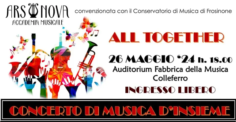 Colleferro Scalo. Un weekend particolare all’Auditorium “Fabbrica della Musica”. Il clou Domenica 26 Maggio alle 18 con il Concerto di Musica d’Insieme “All Together”